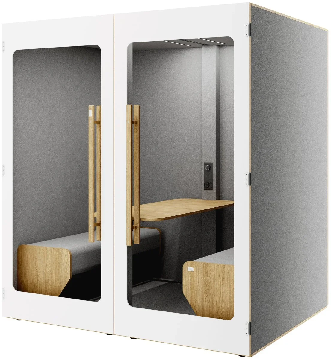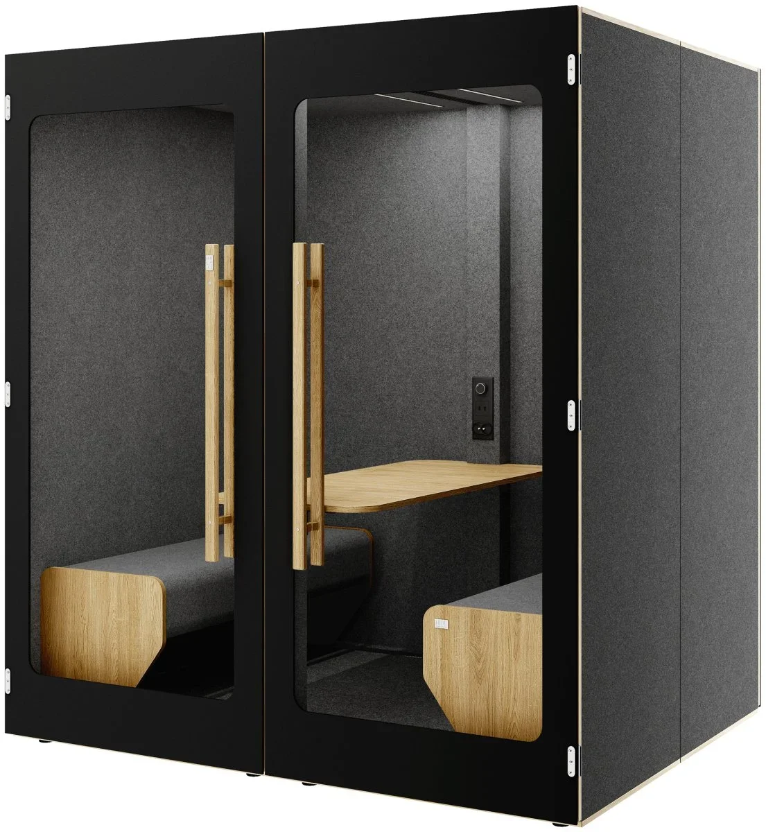 Kabina HIDE H4 została stworzona z myślą o pracy kilku osób jednocześnie. Świetnie sprawdza się jako miejsce do: