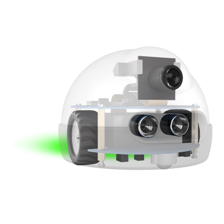 Efekty świetlne i dźwiękowe: Zestaw 4 wielokolorowych diod LED oraz wbudowany buzzer sygnalizują stan robota, ułatwiając bieżącą analizę jego zachowania.